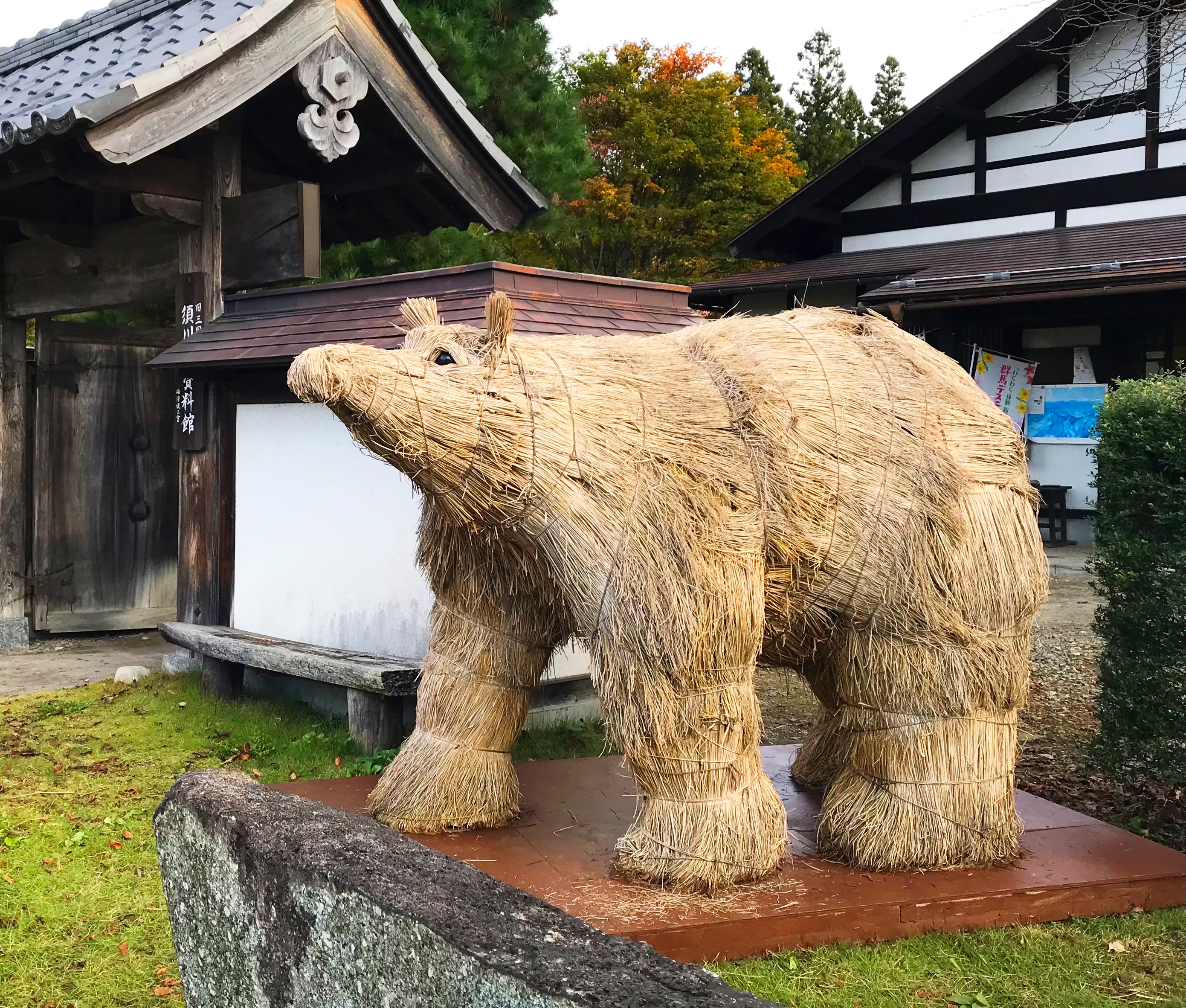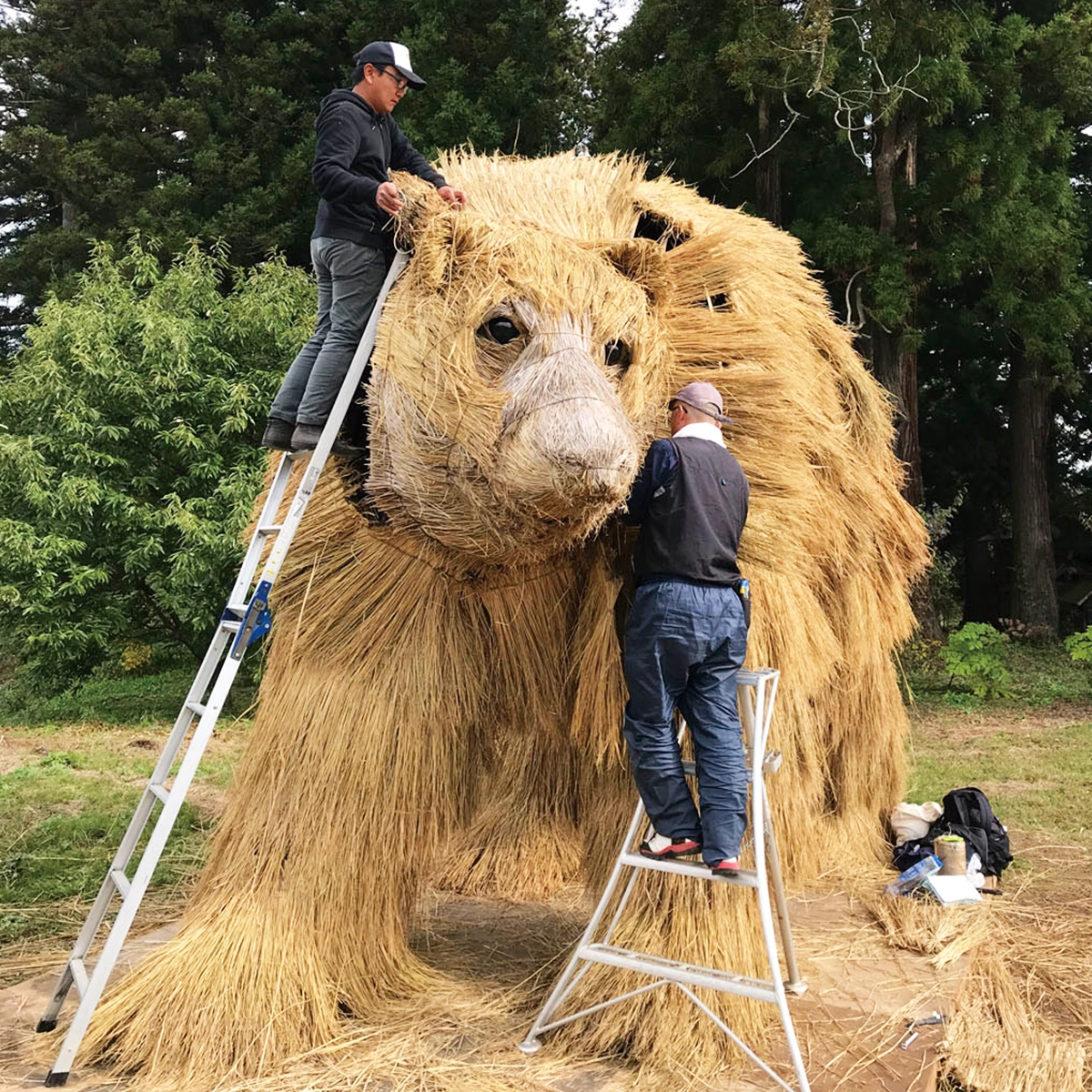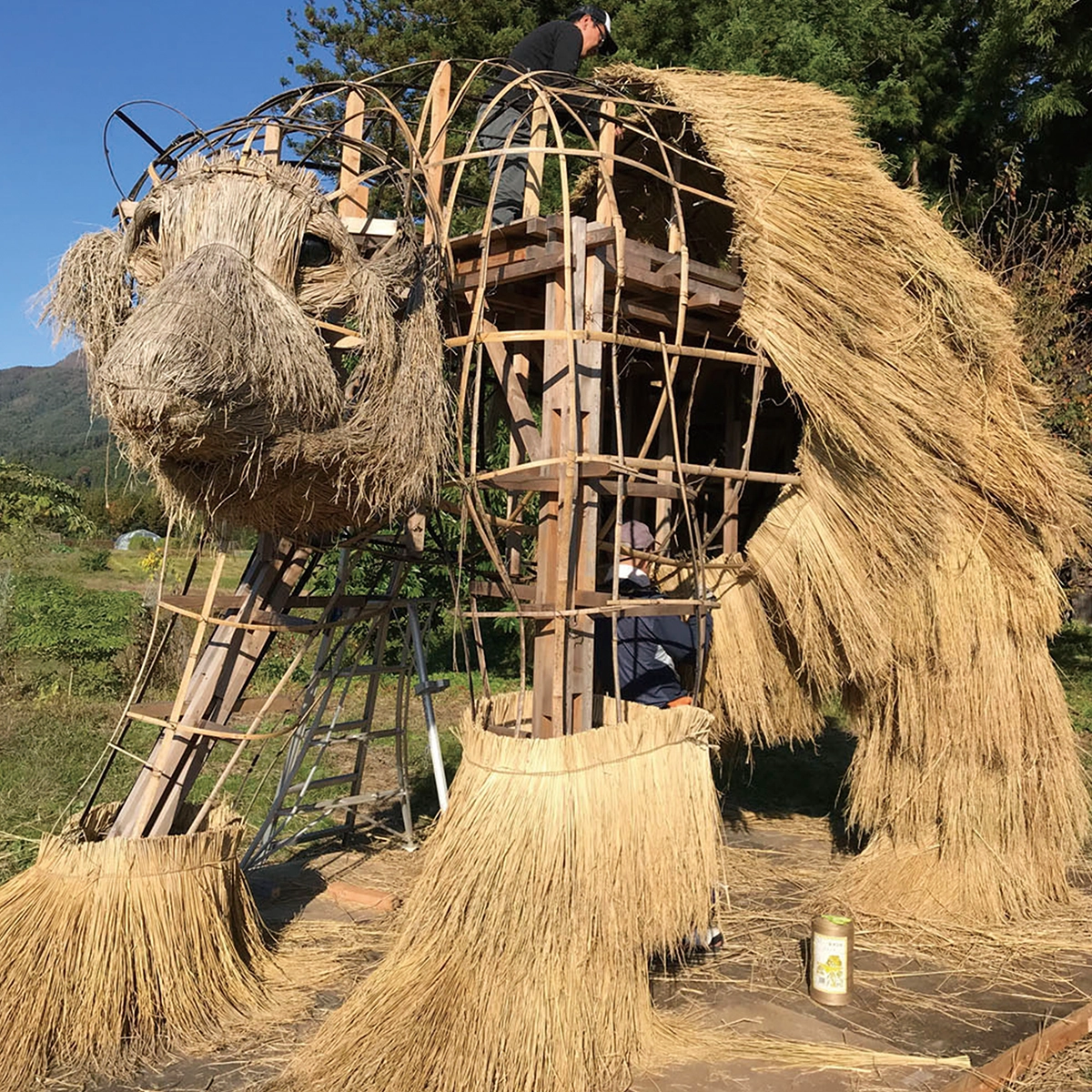 東京ガーデンテラス紀尾井町で展示されたわらアートを解体し、群馬県みなかみ町の「たくみの里」に移設。東京から群馬まで輸送し現地で復元しました。定期的にわらの葺き替えや修復作業を行い、新たな観光資源として期待されています。