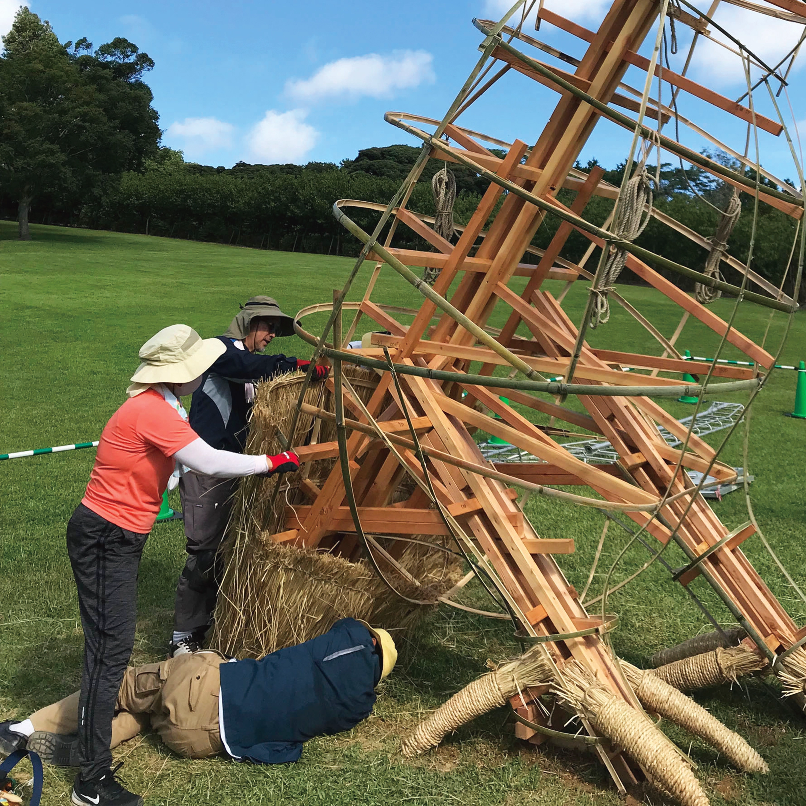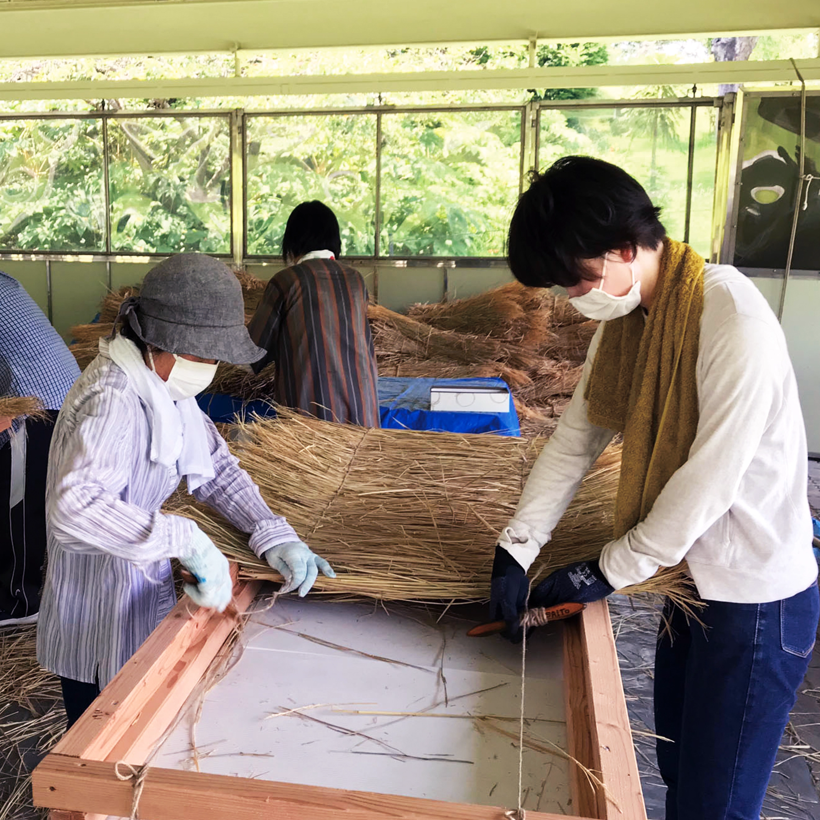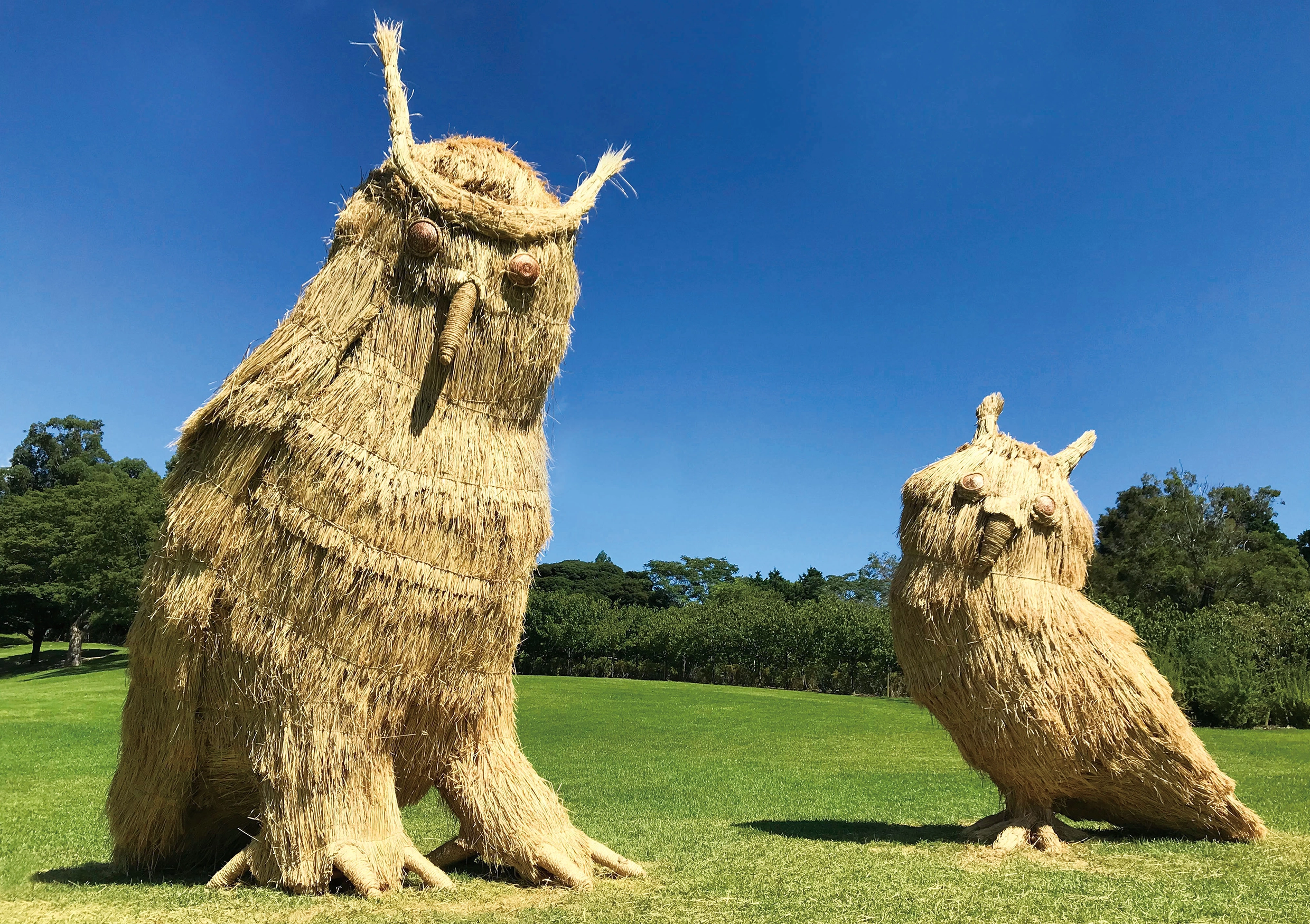 はままつフラワーパークは、静岡県の浜名湖畔にある自然の地形を活かして作られた植物園で別名を花の図書館と呼ばれています。また、園内に点在する「見立て」をテーマにしたアート作品群は公園の大きな魅力の一つです。開園50周年記念事業の一つとして「皆でわらアートを作ろう」プロジェクトが企画され、園内に生息する生き物を題材に「木菟の親子」を地域のボランティアと共に制作しました。
