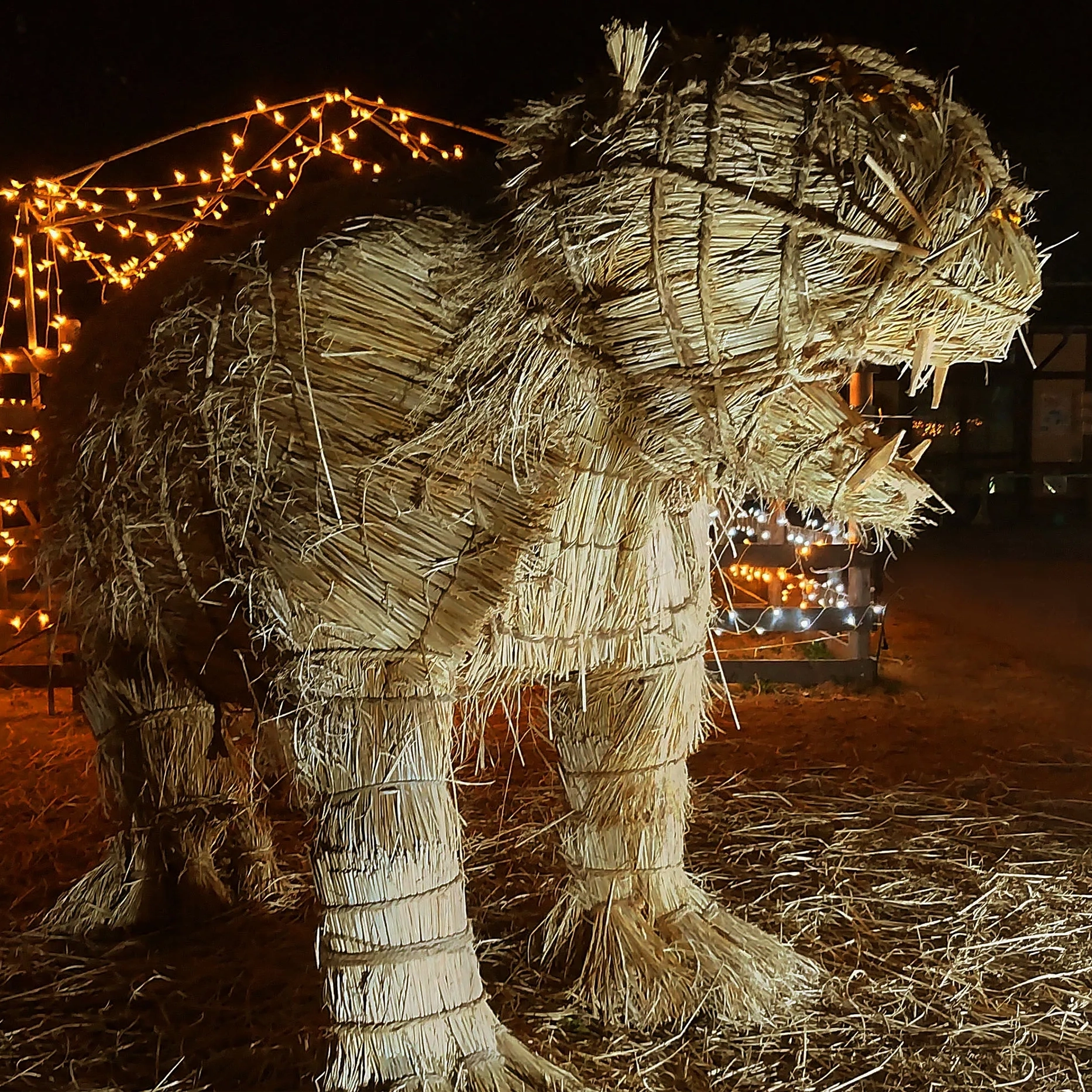毎年、干支の動物を公園のエントランス広場に展示しています。2022年は、「壬寅(みずのえとら)」。この年の安定と平穏を願い制作しました。凛々しくも人を和ませる表情が個性的です。園内の里山農園で収穫された稲わらを使用し展示後は園内の畑で再利用しました。