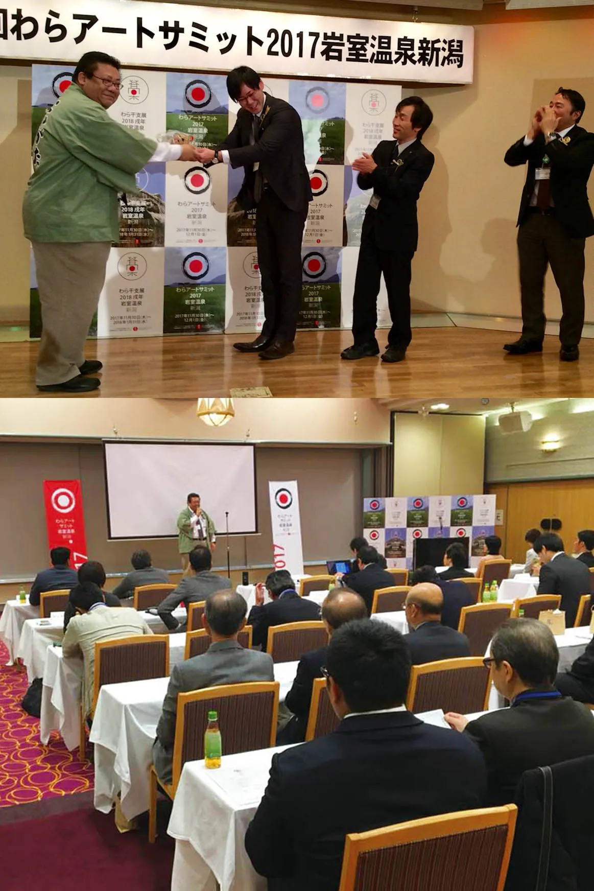 日本全国18ヵ所の地域で取り組まれてきたわらアート。10周年を記念して「第1回わらアートサミット」を開催しました。全国各地で活動している制作者が一同に集い、活動報告や意見交換を交えて都市と農村を繋ぐ地域づくりなど、地域振興に取り組んだ活動が報告されました。