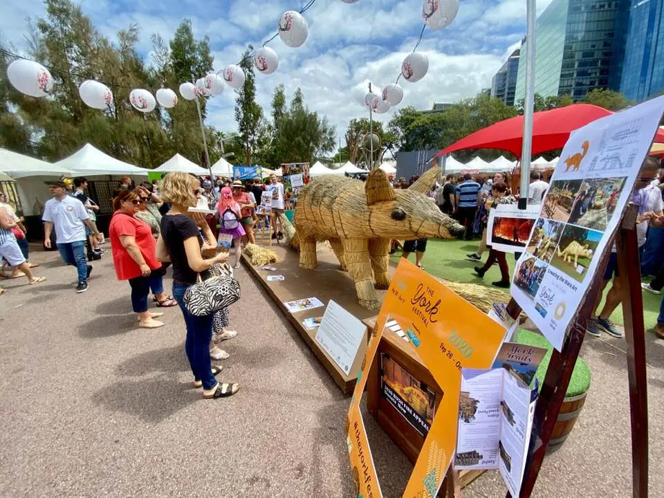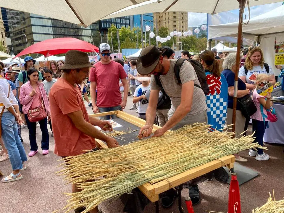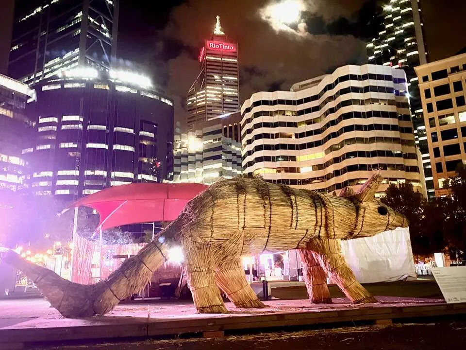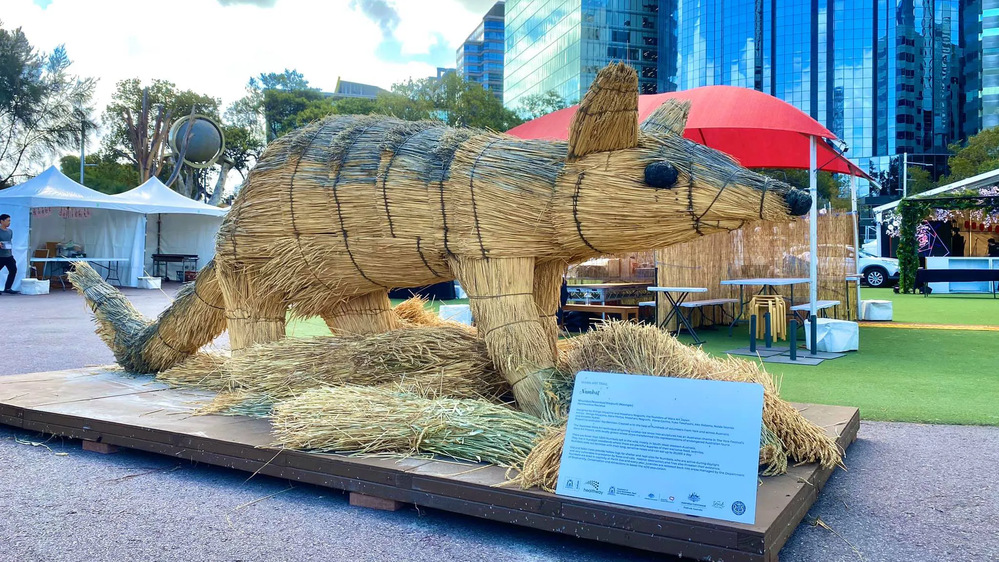 西オーストラリア州パースで「第7回パース日本祭り2020」が開催され、前年のヨークフェスティバルで制作された「ナンバット」(26ページ)を市の中心広場に展示しました。会場では、わら編みやわら付けのワークショップを行い日本とオーストラリアの国際文化交流に寄与しました。